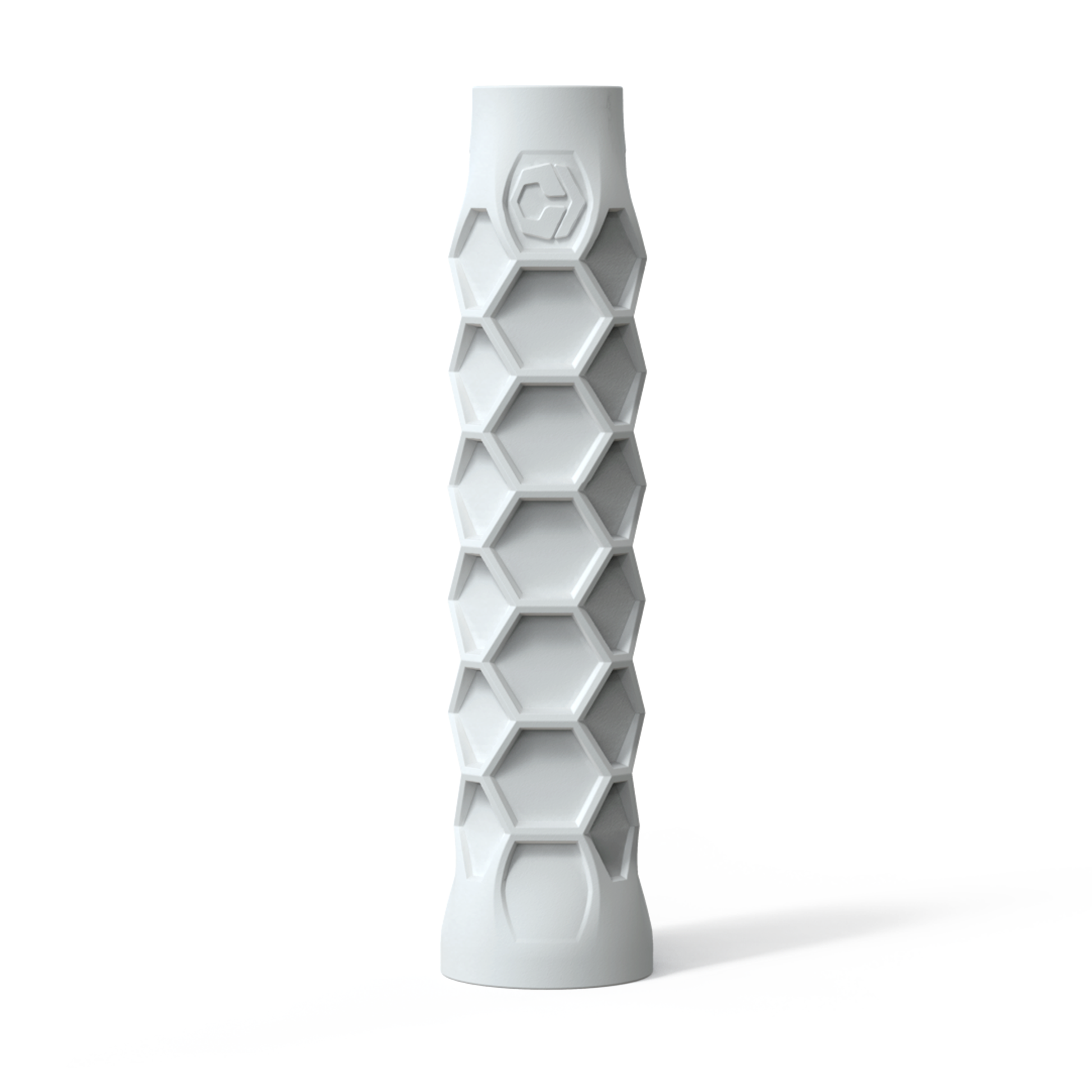 Who would have guessed that a honeycomb would prove to be the perfect ergonomic fit for the hand to naturally rest on? Not only that, but the concave hexagons provide a larger friction surface, which reduces the need to tighten the grip and minimizes vibrations from impacts, both traditional causes of injuries.