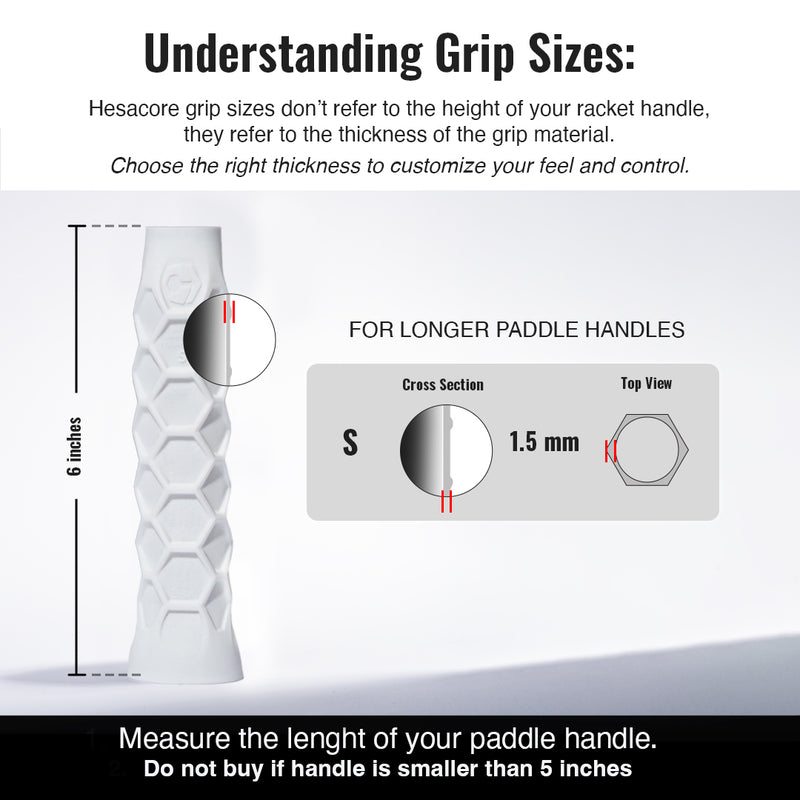 Yes, there are, Hesacore is available in two sizes: S and M. The size S is suitable for players who are used to using only one overgrip over the traditional grip. Size M is recommended for those players who usually use two or more overgrips over the traditional grip. In any case, we suggest always using only one overgrip over Hesacore and choose the size according to the size of the hand.