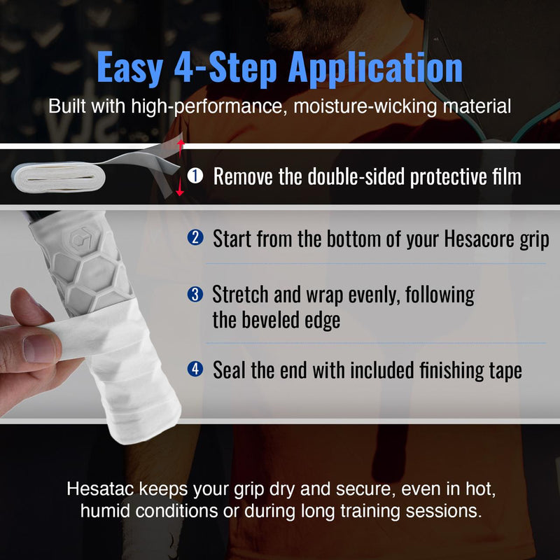Hesatac is a high-performance overgrip designed specifically to complement Hesacore grips. It features moisture-wicking, stretchable material and a double-beveled edge for easy installation.