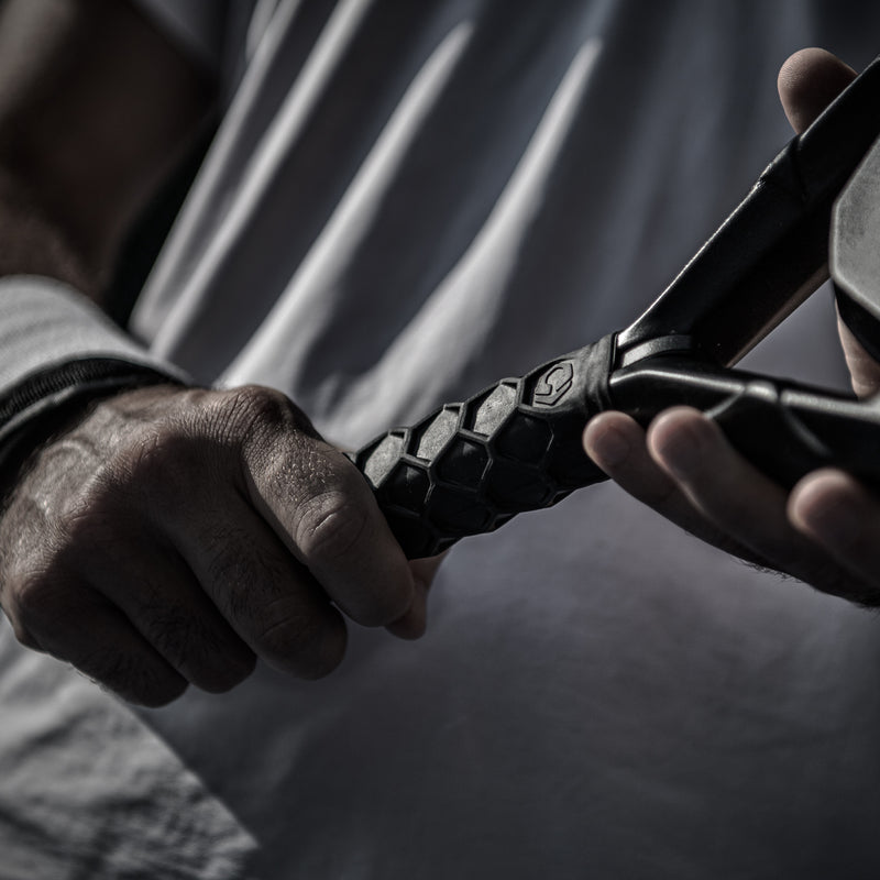 Who would have guessed that a honeycomb would prove to be the perfect ergonomic fit for the hand to naturally rest on? Not only that, but the concave hexagons provide a larger friction surface, which reduces the need to tighten the grip and minimizes vibrations from impacts, both traditional causes of injuries.